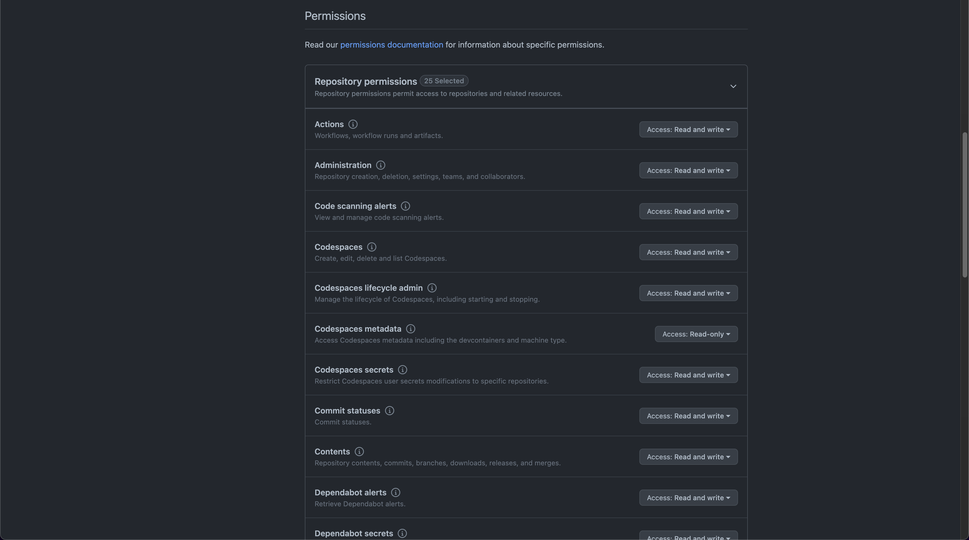 Repository access에서는 All repositories로 설정해 주었다.