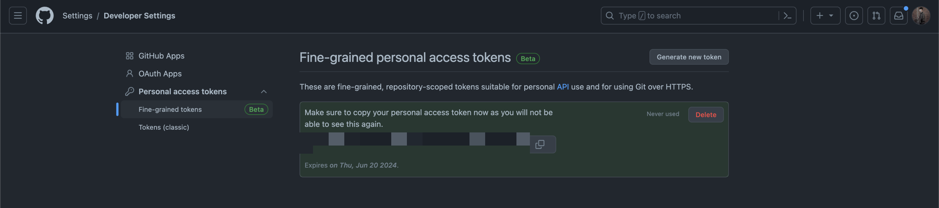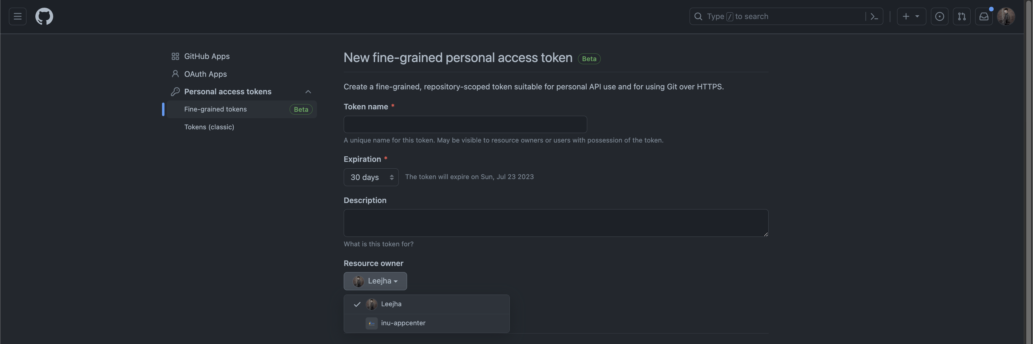 Fine-grained personal access token (Beta)