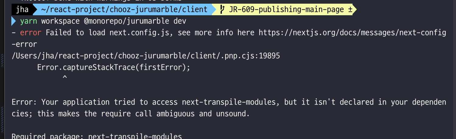 위 에러는 next-transpile-modules 디펜던시를 추가하여 해결하였다.