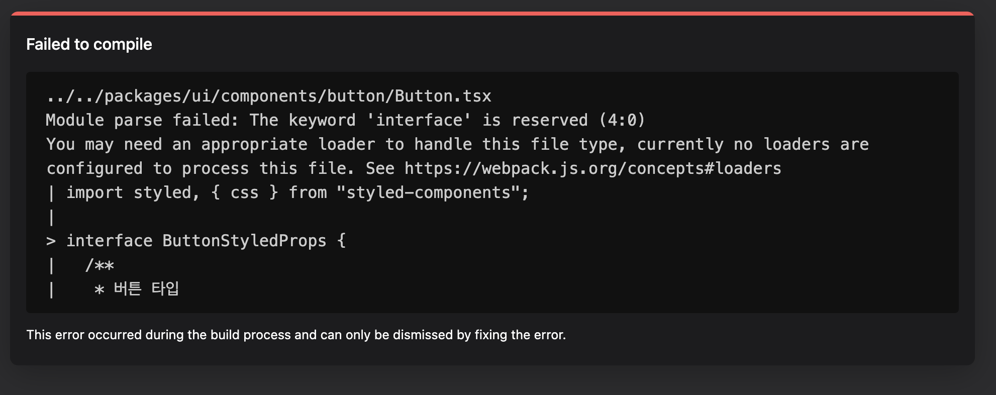 이에 따라 ui 패키지의 styled-components를 devDependencise에 추가해 주었다.