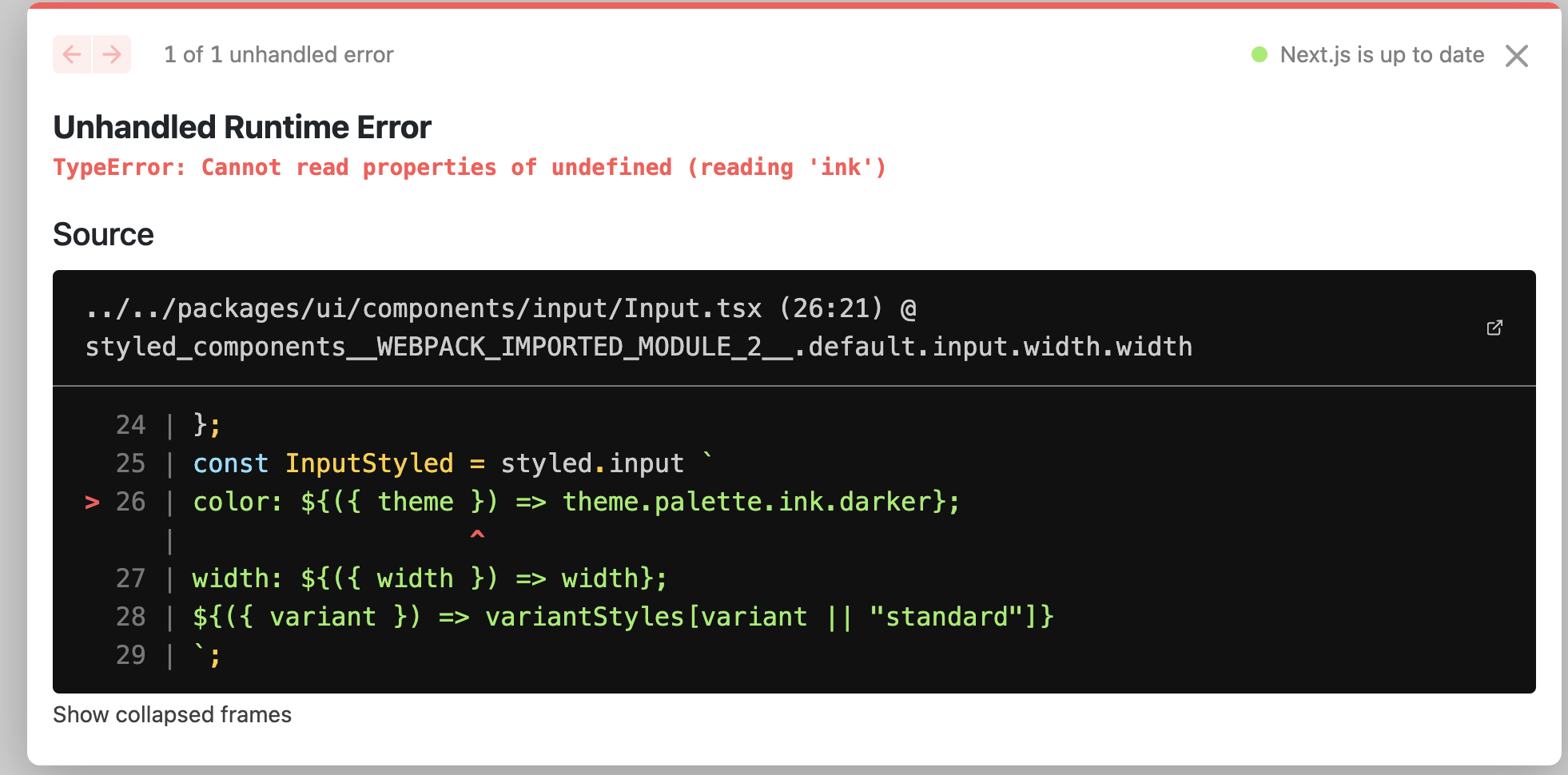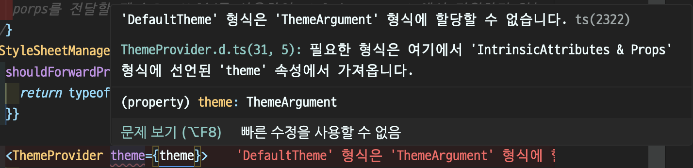 ui 패키지에서 사용하고 있는 theme를 전달해 주자 다음과 같은 에러가 나타났다.