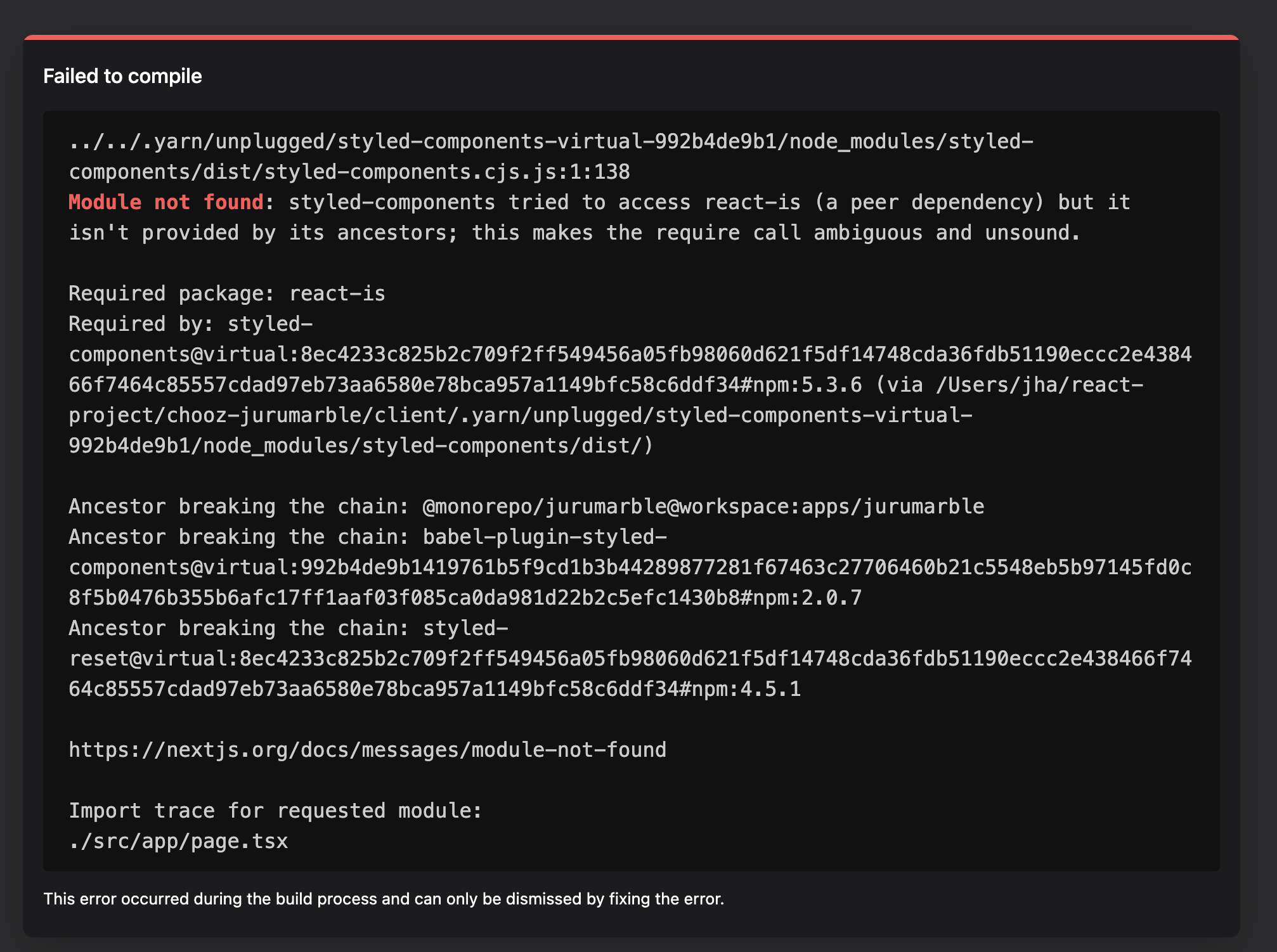 dependency는 빌듯이 포함되는데, 위와 같은 경우 양 측의 styled-components가 포함될 수 있다고 생각했다.