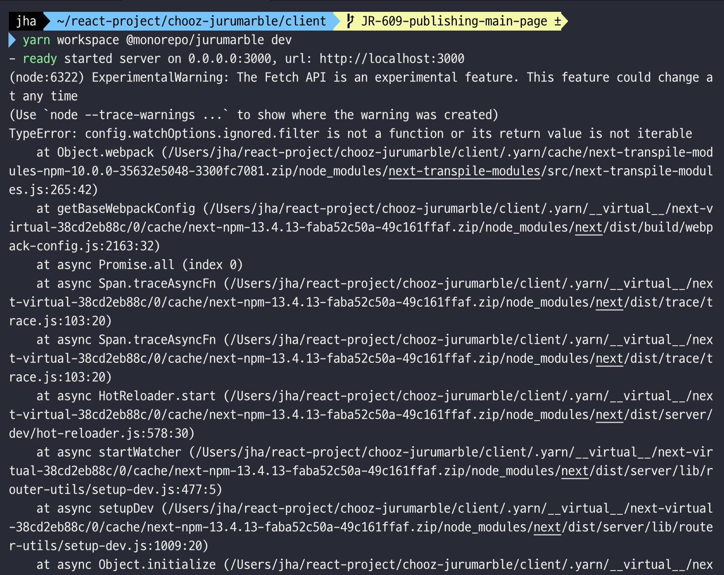 (그런데 다른 워크스페이스에서 next 13.1.6 버전을 사용 중인데, 이곳에서는 에러 없이 잘 작동하고 있다.)