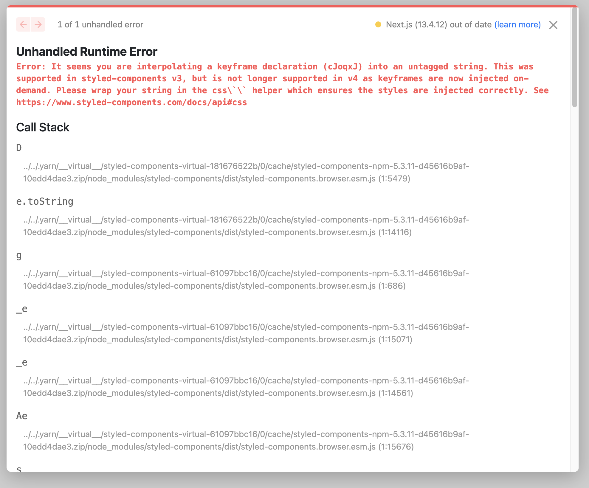 새 워크 스페이스에서만 styled-components ^6.0.7 버전을 사용하고 있었는데, 이것을 ^5.3.6로 통일시켰다.