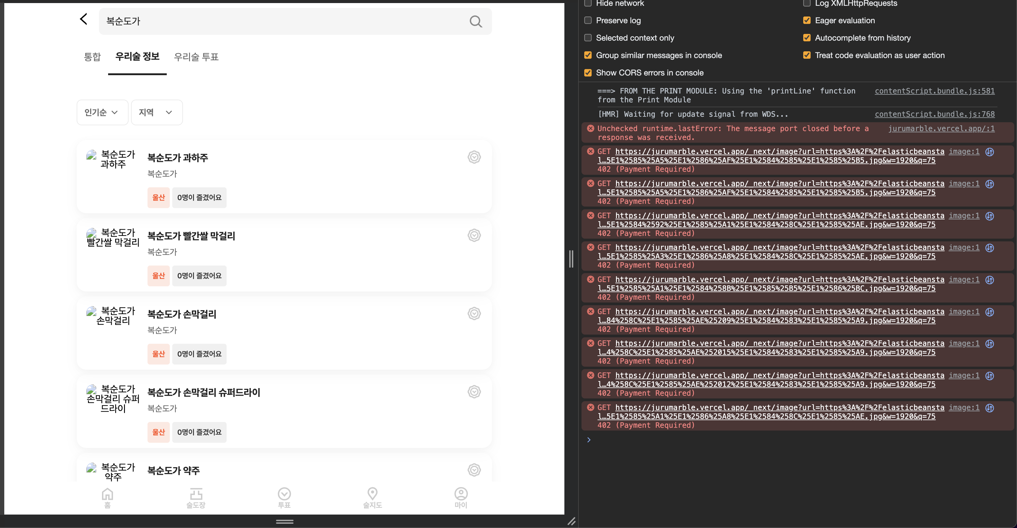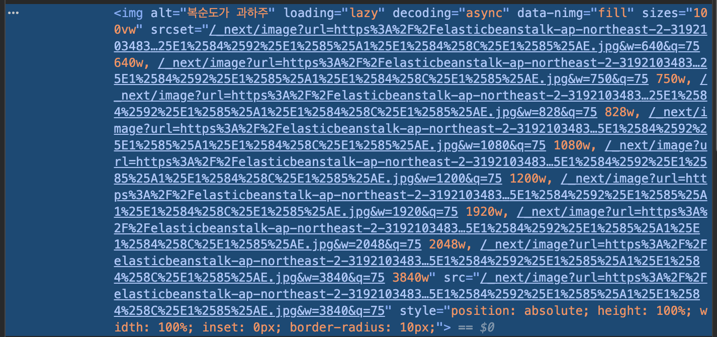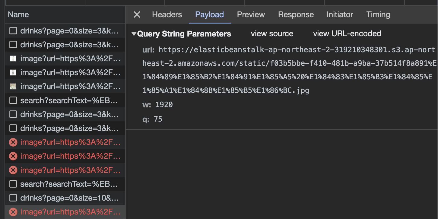 - 이미지 최적화 요청에서 w값이 고정되고 동일 증상 반복