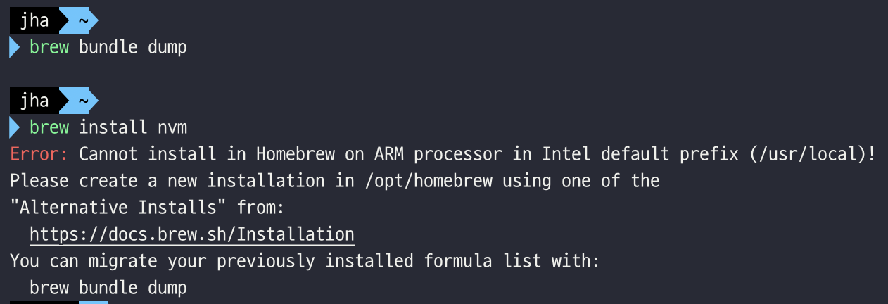 따라서 필수는 아니지만 m1 homebrew만 설치해서 깔끔하게 관리하고자, 마이그레이션 작업을 진행했다.