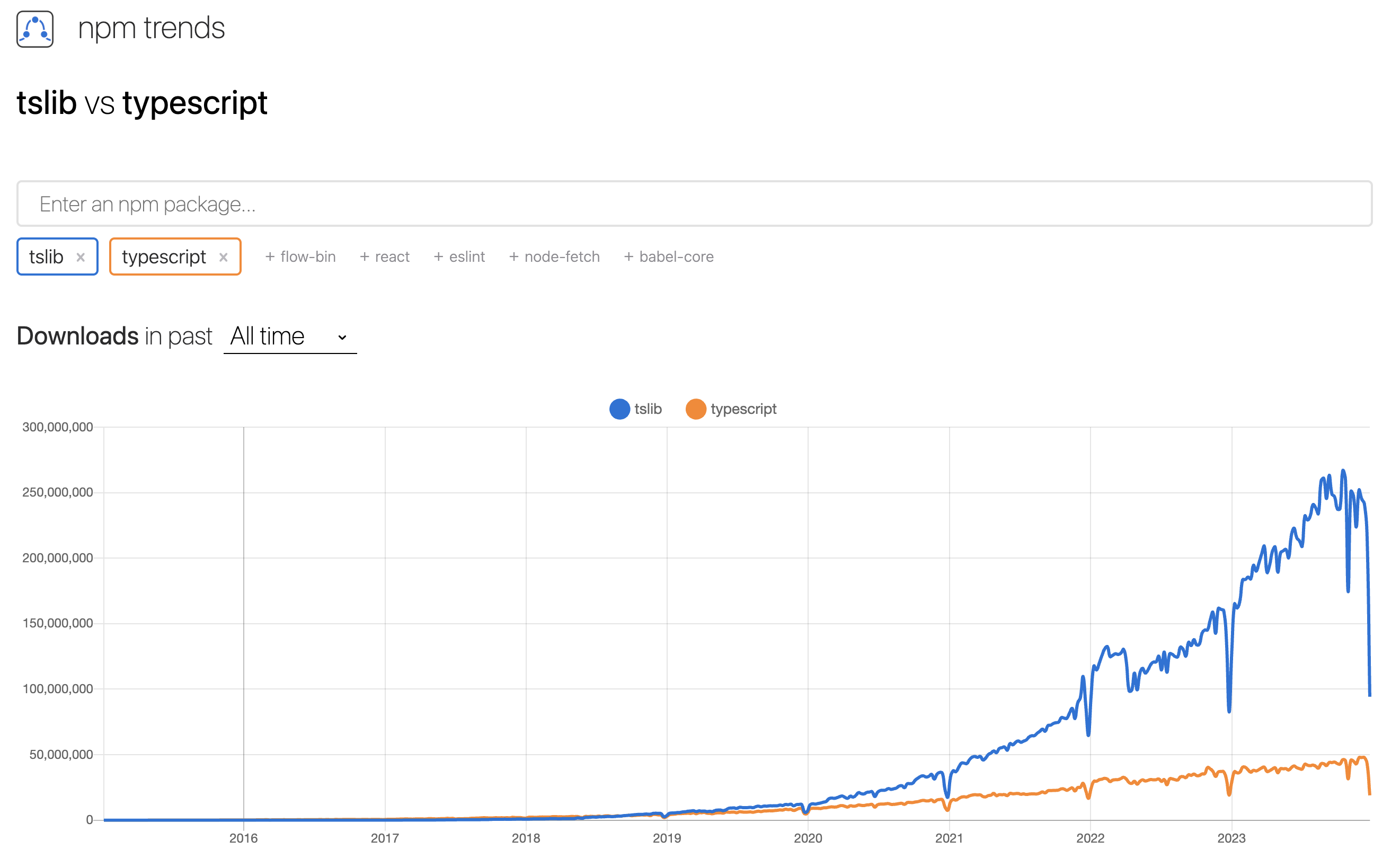 https://npmtrends.com/tslib-vs-typescript