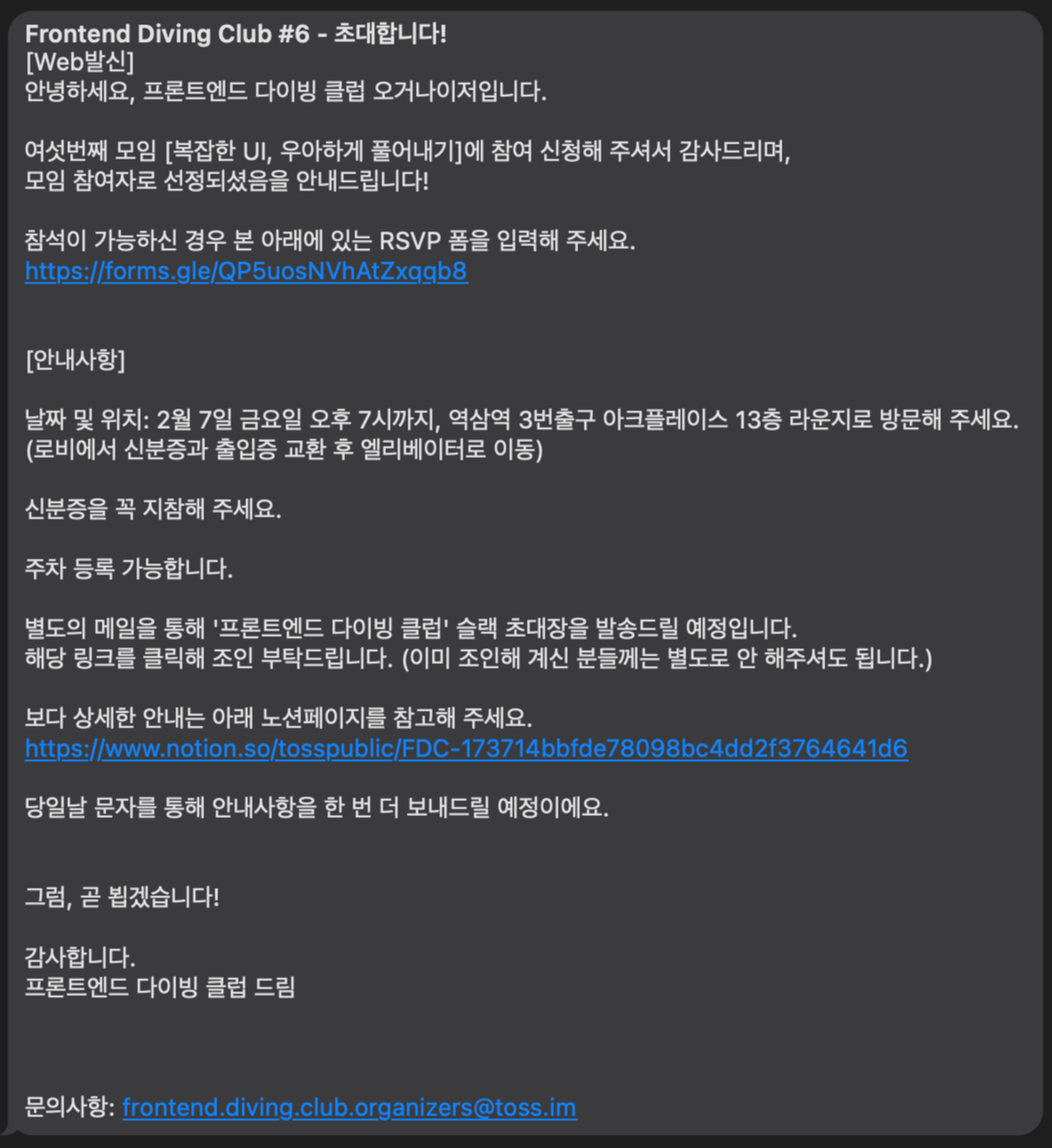 LinkedIn Viva Republica (Toss) 페이지: [Frontend Diving Club] 프다클 여섯번째 모임 참가 신청 오픈 다양한