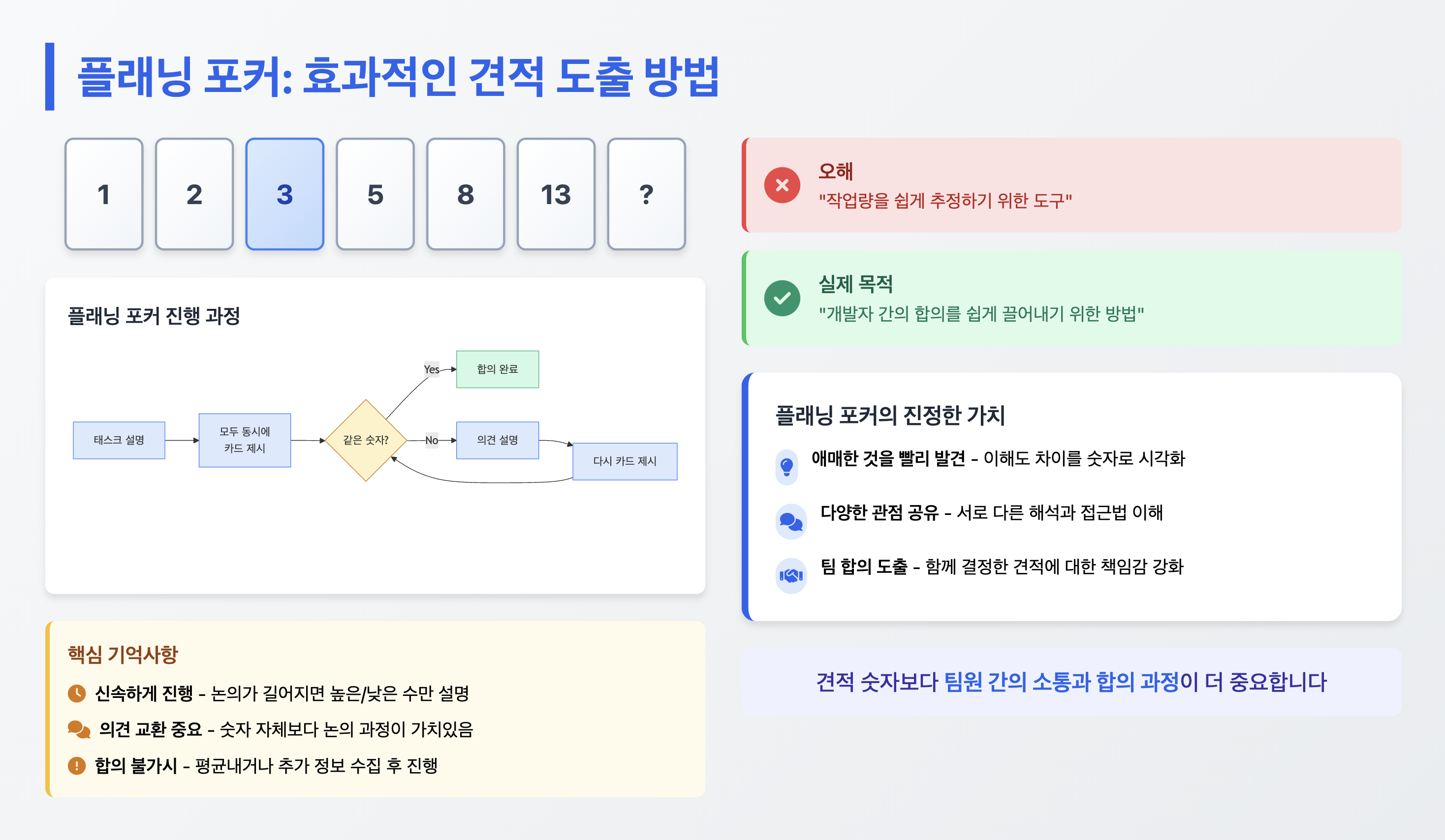 - 숫자로 나오는 견적 결과가 아니라 팀원이 함께 모여서 이야기하는 과정이 중요