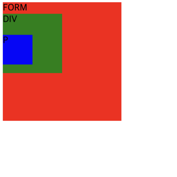 각 form, div, p 태그의 영역을 클릭하면 alert를 실행하는 코드를 작성하였습니다.
