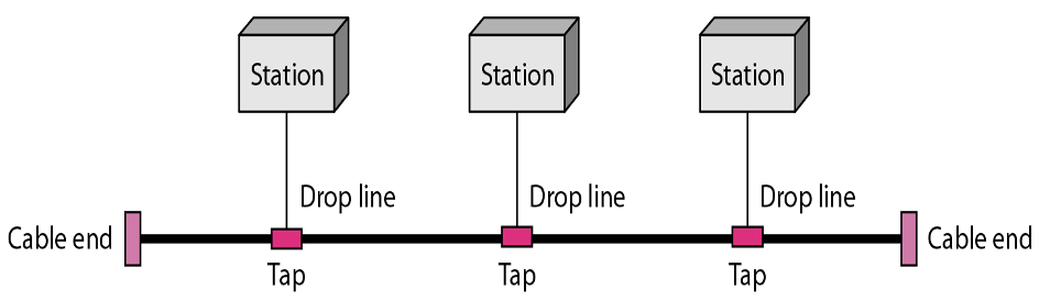 - 탭(tap)과 유도선(drop line)에 의해 버스에 연결