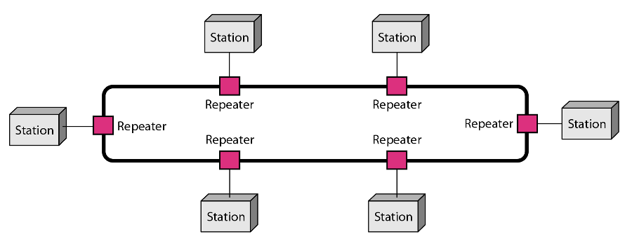- 자신의 양쪽에 위치한 장치와 점 대 점 연결