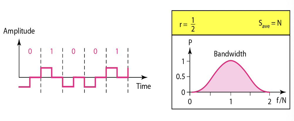 - RZ(Return to Zero) : 신호 요소가 바뀌고 0으로 돌아감