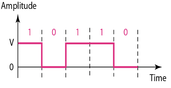 - NRZ-L(Non Return to Zero - Level) : 전압의 값에 따라 데이터 값 결정